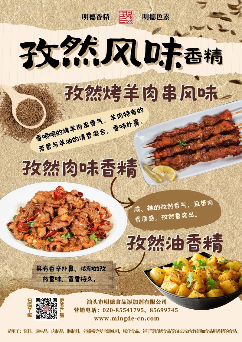 明德孜然風味系列香精 濃郁孜然 烤香誘人汕頭市明德食品添加劑有限公司推出的孜然風味系列香精,涵蓋孜然烤羊肉串風味、孜然肉味香精、孜然油香精等多種調(diào)性。產(chǎn)品風味真實,香氣穩(wěn)定,適用于肉制品、調(diào)味料、休閑零食、腌制料及復合調(diào)味等B端應(yīng)用,幫助工廠快速打造具有記憶點的孜然風味。