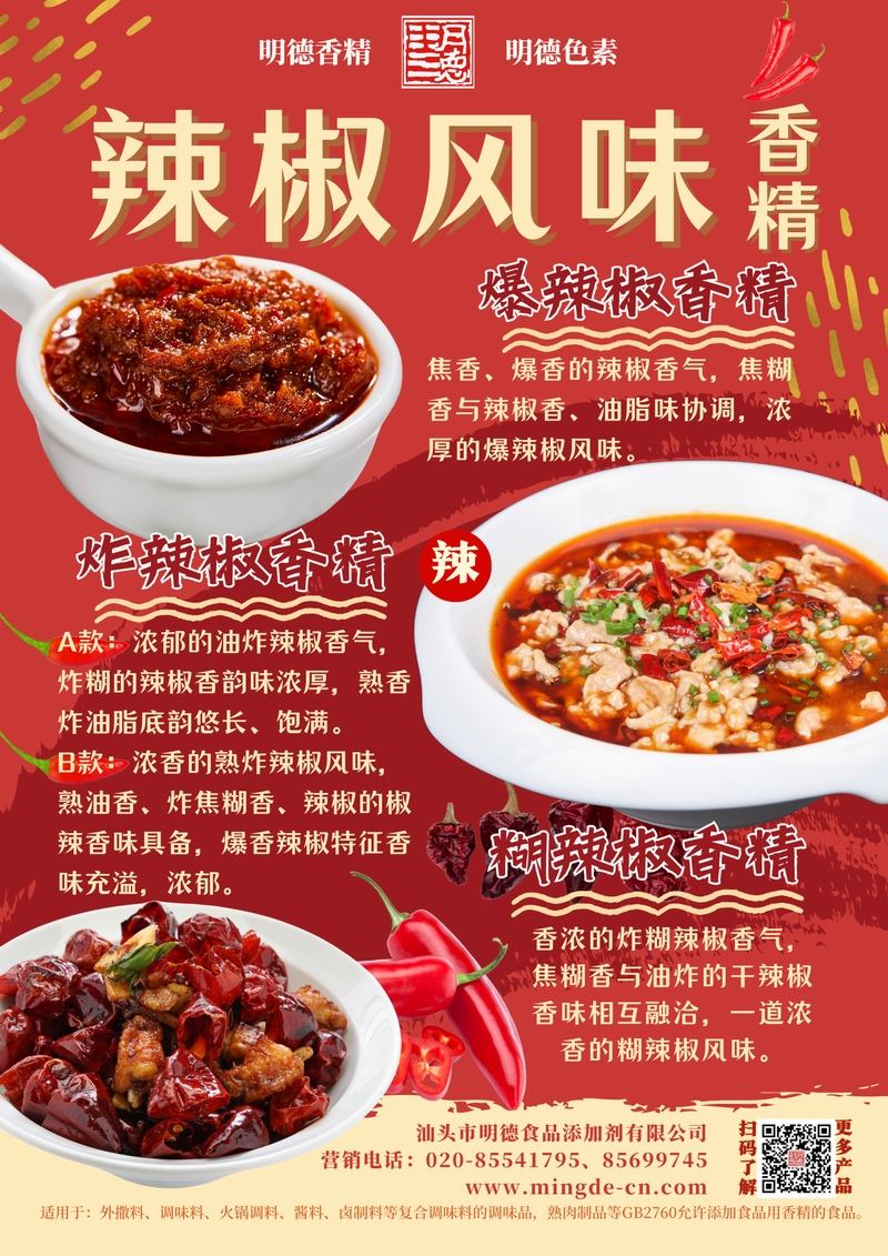明德辣椒風(fēng)味系列香精 層次鮮明 爆香濃郁汕頭市明德食品添加劑有限公司推出的辣椒風(fēng)味系列香精,涵蓋爆辣椒、炸辣椒、糊辣椒等多種類型。產(chǎn)品風(fēng)味真實,香氣飽滿,適用于調(diào)味品、復(fù)合調(diào)味料、醬料、鹵制食品、肉制品等B端應(yīng)用,幫助工廠快速打造具有記憶點的辣椒風(fēng)味。